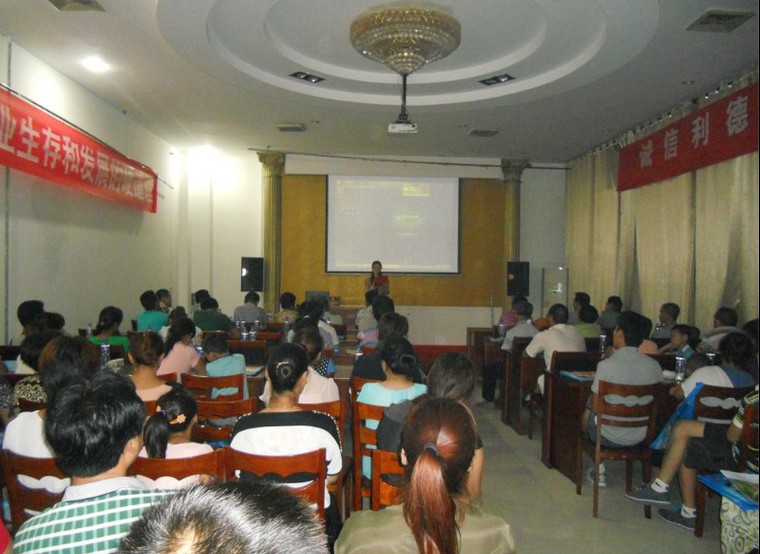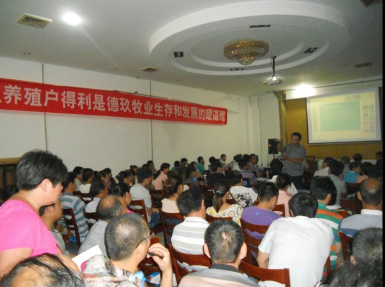 徐老師從進(jìn)雛的溫度,開水給料和預(yù)防用藥,光照的調(diào)控和濕度的控制,通風(fēng)的管理等給養(yǎng)殖戶做了詳細(xì)的講解。另外又講了流感的主要診斷特點(diǎn),腺胃炎的發(fā)病治療,以及氣囊炎的控制,如何用藥,做了生動的而細(xì)致的分析。最后給養(yǎng)殖戶一個互動的時間,有什么問題提出來,他一一認(rèn)真的解答,我們客服部的李經(jīng)理(李建輝)也參與了進(jìn)來,現(xiàn)場氣氛非;钴S。會議現(xiàn)場由原來預(yù)計的50個人,一下增到了一百多個人,這是我們想都沒想到的,這說明了養(yǎng)殖朋友們對知識的追求,對技術(shù)的渴望。以后這樣的會議我們會辦的更多,幫助養(yǎng)殖朋友解決養(yǎng)殖方面的困難,讓更多的人走進(jìn)利德爾大講堂。