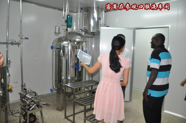 尼日利亞客商來我公司參觀考察,并依次對公司原料庫、口服液車間、制水間、成品庫、中藥提取車間、混料間、實驗室、質(zhì)量管理部進行了認真細致的詢問和了解,并表示要與我們簽下長期合作的協(xié)議。