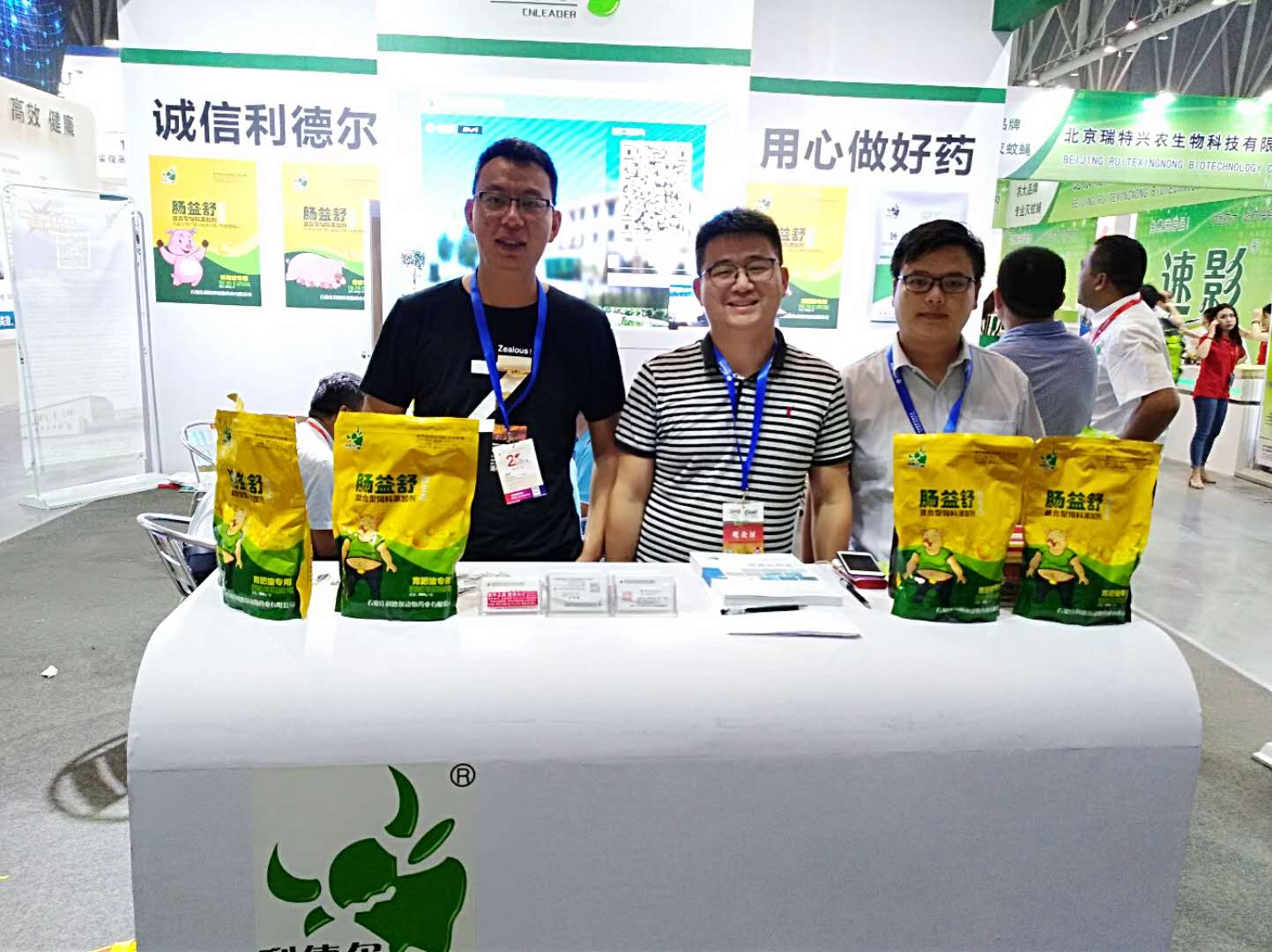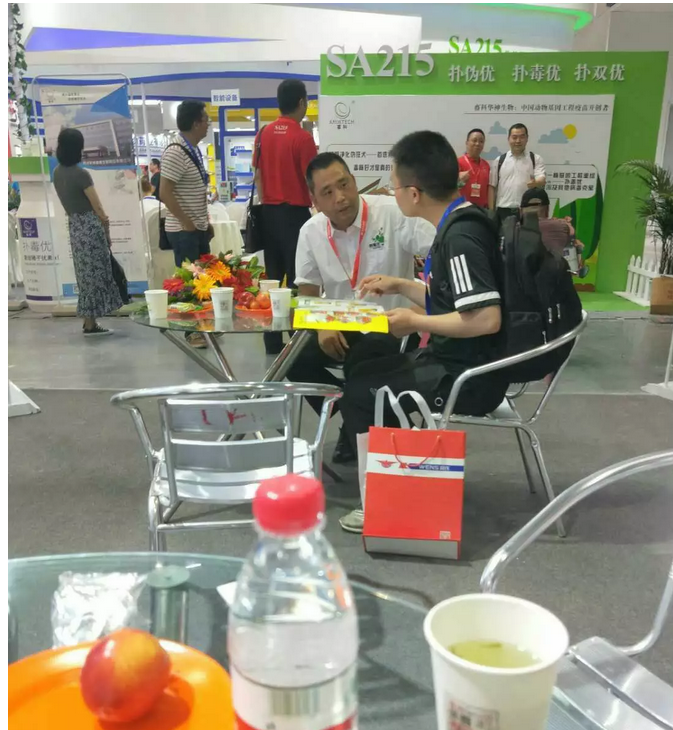 來到展位的客戶絡(luò)繹不絕,我們的產(chǎn)品--腸益舒,比較受客戶的青睞,尤其是對健康無抗養(yǎng)殖理念非常認(rèn)可