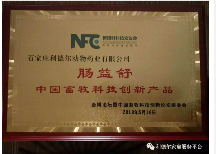 此次重慶會議,利德爾藥業(yè)在2018畜博會論壇,腸益舒榮獲《畜牧科技創(chuàng)新產(chǎn)品》的稱號。