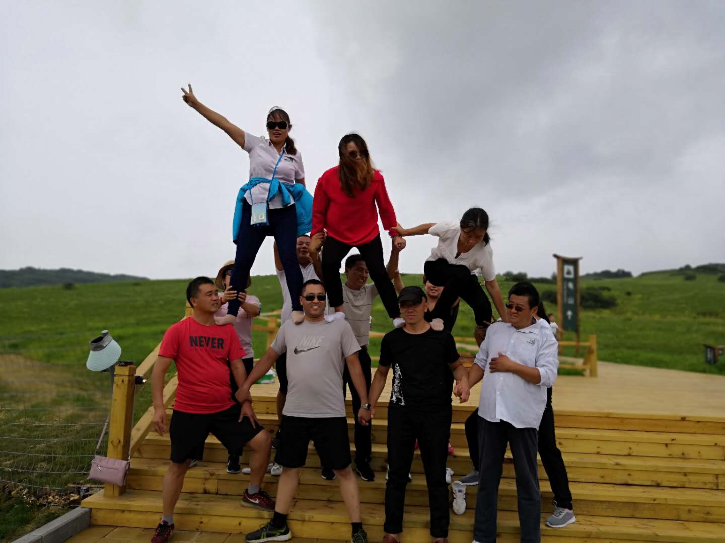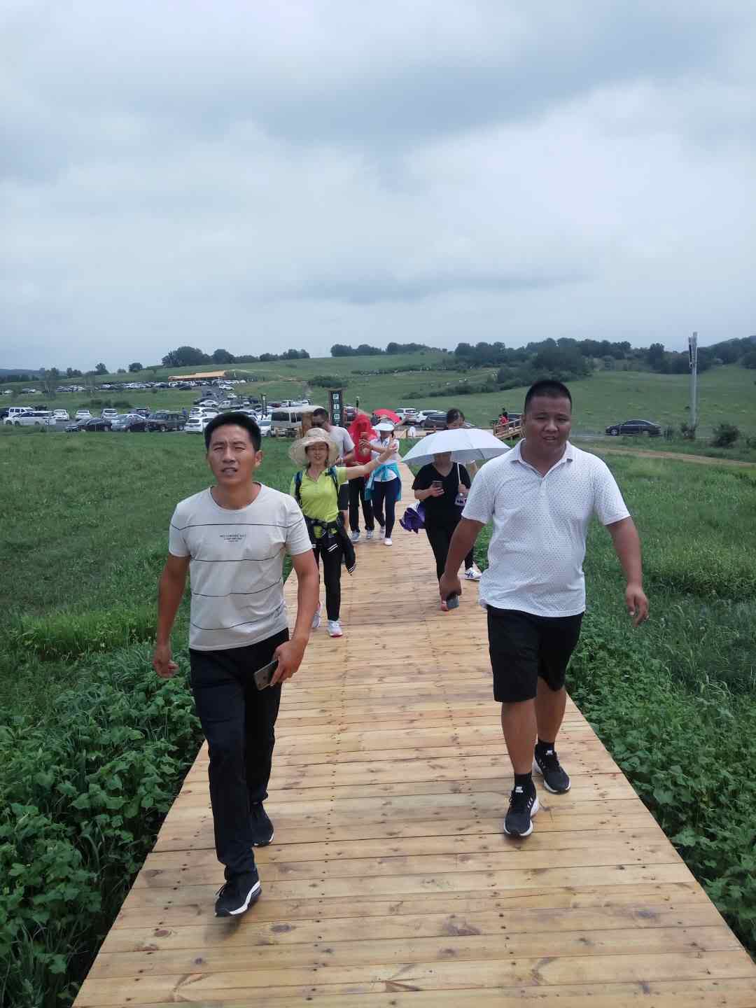 每走到一處景點就會停下瀏覽,草地摩托,搭人墻,盡情玩耍。行車中我們玩游戲,石頭剪刀布,輸?shù)南萝嚺懿,我們?qū)車緊跟其后,由于下雨,游戲不能進(jìn)行下去。塞罕壩的白樺樹,松樹是這里的主要林木,我們來到一處松樹林,席地而坐,開起了公司小會議,這個意境不錯哦,不過時間長了,凍的有點小發(fā)抖!哈哈! 晚上住在一家農(nóng)家小院,新鮮的蔬菜自己可以去摘,烤羊腿,晚上篝火,這是草原之行,大家都期盼的,不顧一天的疲憊,唱歌,圍著篝火跳躍,奔跑,怎么嗨怎么玩!