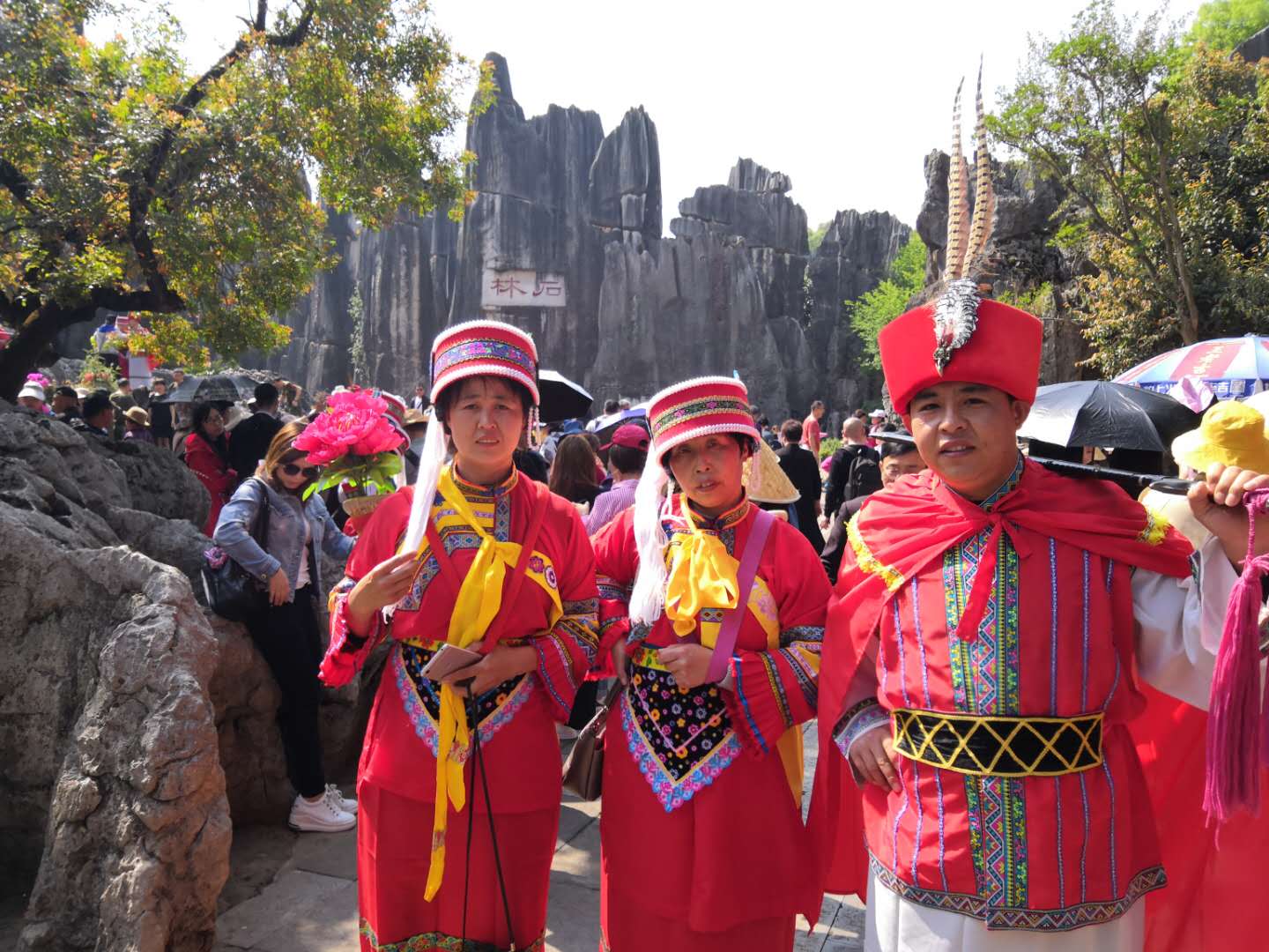 第一站-----石林,由于云南得天獨(dú)厚的地形和溫?zé)釛l件,發(fā)育而成喀斯特地貌獨(dú)具特色的產(chǎn)物——石林,林中的石頭奇特怪異,各種造型,當(dāng)?shù)厝硕假x予了每塊石頭,不同的故事,是故事給了石頭靈氣還是石頭本身的魅力,每天會(huì)吸引上萬的游客參觀游覽。