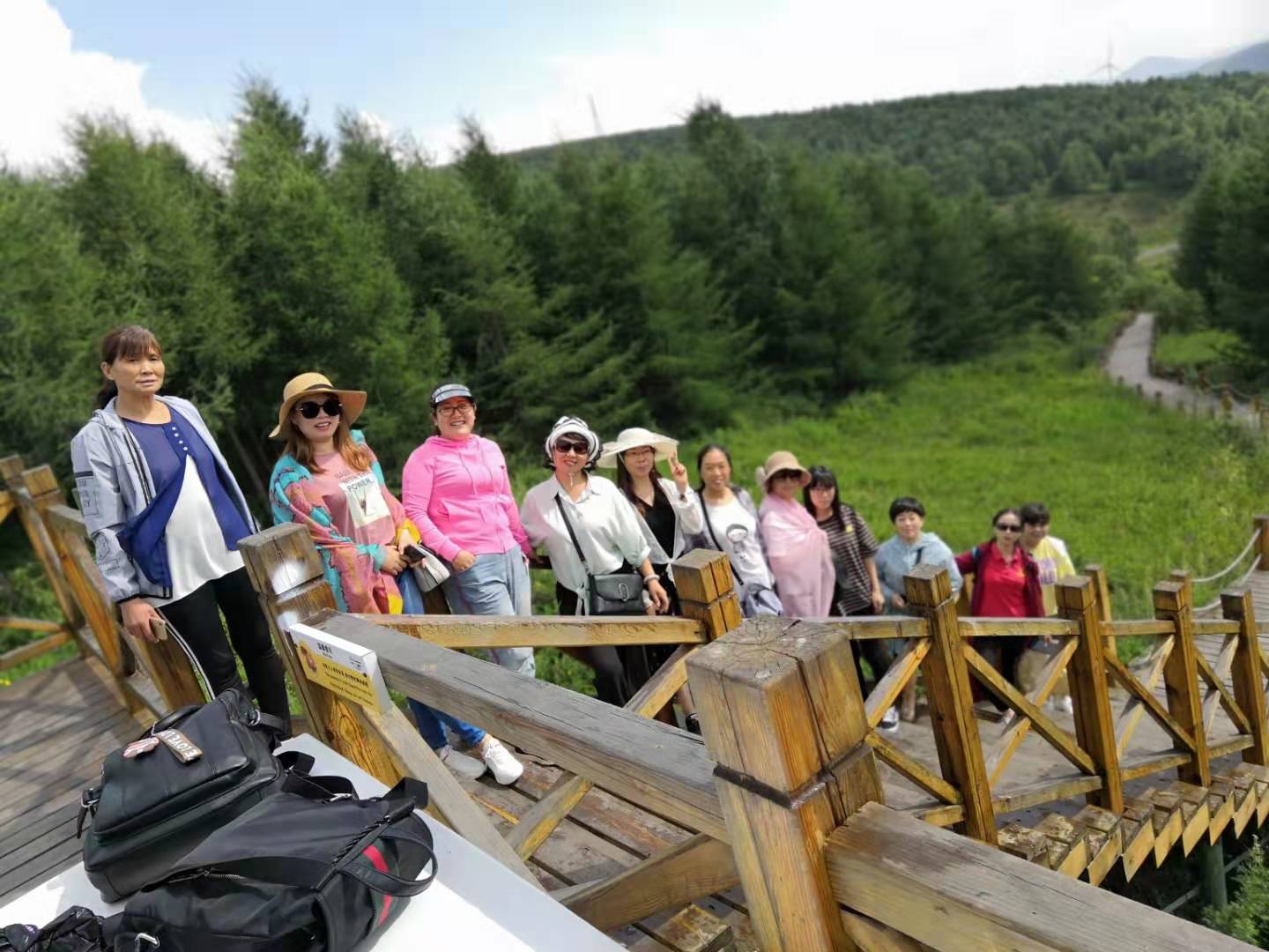 由于崇禮為了準(zhǔn)備2022年的冬季奧運(yùn)會,到處在修路,所以路上耽擱了點(diǎn)時間,下午2點(diǎn)到達(dá)翠屏山,這里可是天然額氧吧,到處蒼松勁挺,山巒蜿蜒、空氣清新、野花爛漫。您不僅可以觸摸明長城遺址的古韻,觀賞風(fēng)車矩陣的雄偉壯觀,體驗(yàn)林海松濤的樹聲鳥鳴,欣賞山頂花海的絢爛多彩,感受電車穿越在蜿蜒的山林間,涼風(fēng)嗖嗖的灌耳,一排排的松樹甩在了身后,讓你夏日間感受清涼的絕境。登上山頂后,大家不顧平日的羞澀,擺出各種姿勢,美拍,玩的時間感覺很短,沒有多久,兩個多小時過去了,在游覽期間可以看到運(yùn)動員在訓(xùn)練,為了冬奧會做準(zhǔn)備。之后乘車前往壩上草原。
