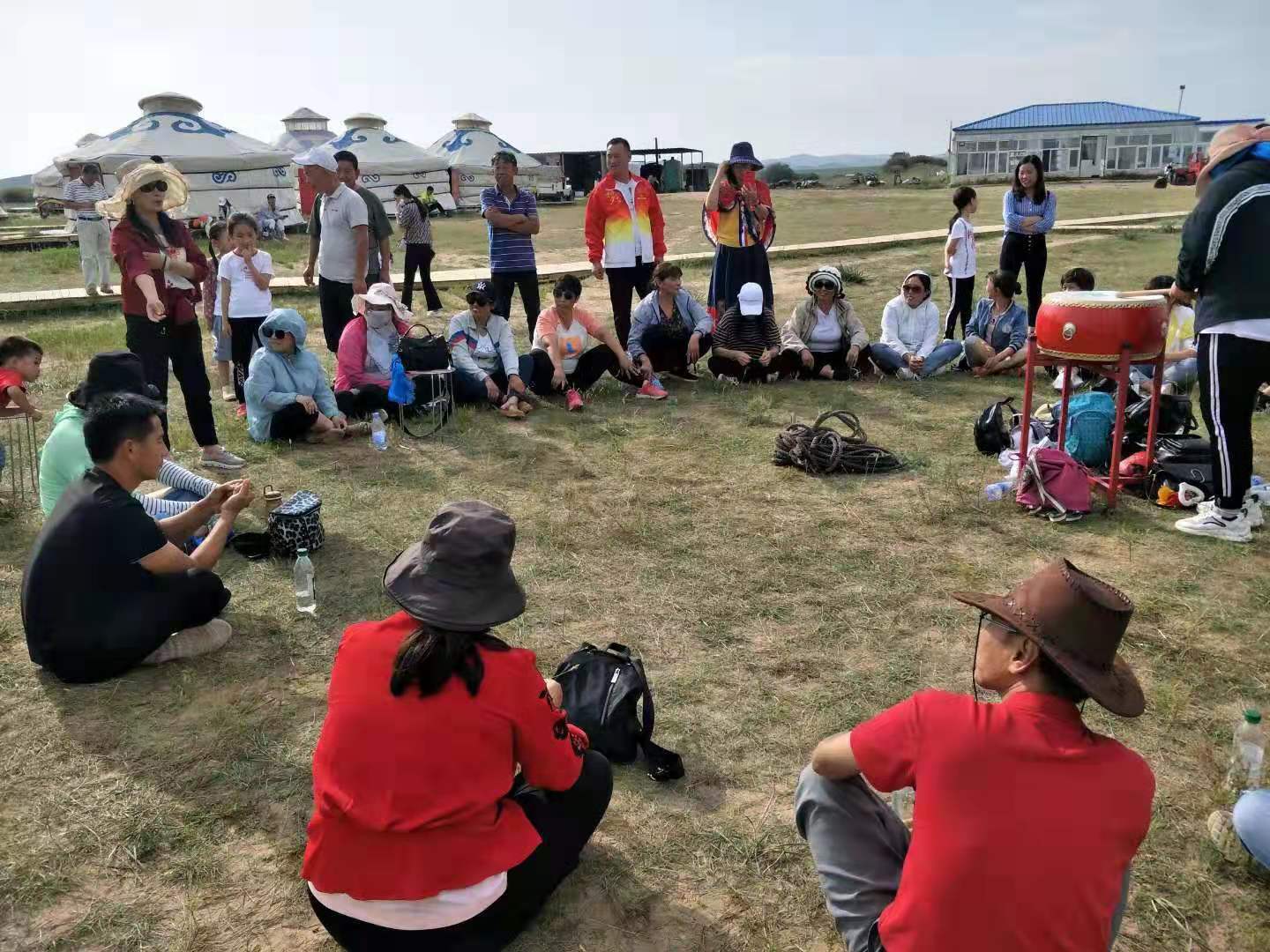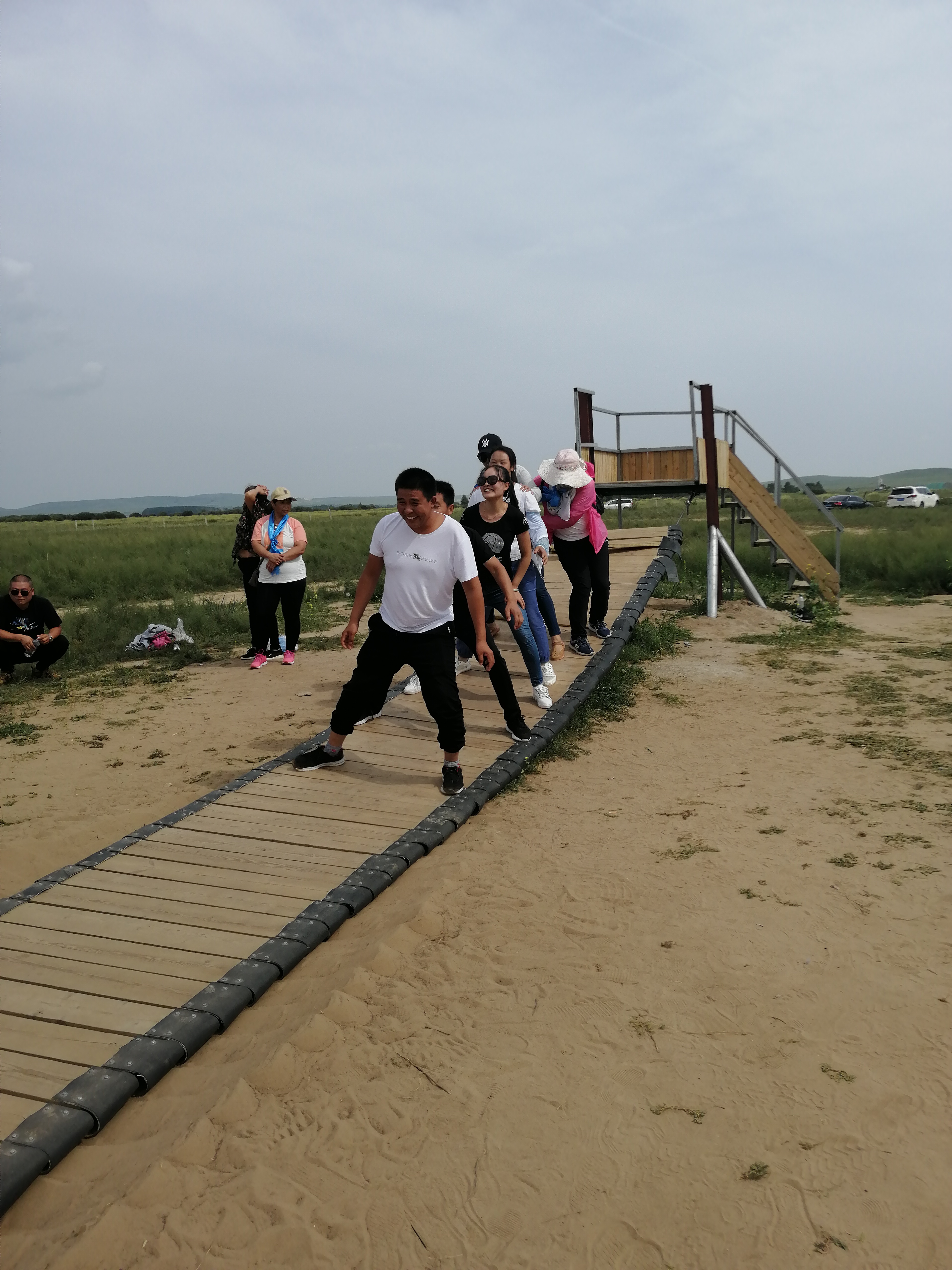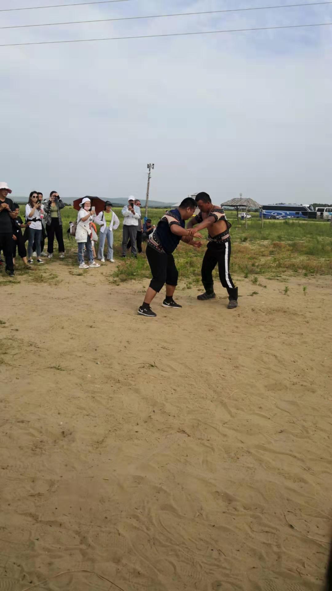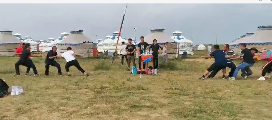 中午抵達(dá)蒙古大營,途徑忽必烈影視城和梳妝樓,盛裝熱情的草原小伙策馬揚(yáng)鞭,遠(yuǎn)遠(yuǎn)的迎著我們的車過來,為我們接風(fēng)洗塵,獻(xiàn)上哈達(dá)和下馬酒。中午品嘗草原的蝎子骨莜面宴,營地里的項(xiàng)目比較多,騎馬的驚魂,摔跤感受蒙古人彪悍,眾人蕩沙橋的刺激,步調(diào)不一致,便會被掉下橋,射箭,穿蒙古民族服拍照等,感受蒙古的文化氣息。我們來的時候自備了繩子和大鼓等裝備,拔河比賽,尤其于廠長老當(dāng)益壯,也不示弱參其中,在呼喊口號聲中使勁全身力氣,整個隊(duì)伍,身體向后傾斜。擊鼓傳花,在鼓聲中花兒在每個人的手中飛舞傳遞,就像一塊燙手的山芋,趕緊的拋給下一個人,鼓;湔l家,就表演一個節(jié)目了,好多游客過來圍觀,有的游客也參與進(jìn)來和我們一起進(jìn)行游戲,踩氣球等。晚上觀看名族演出和篝火晚會。讓您忘記城的喧囂與疲憊,感受草原的廣闊與放縱。