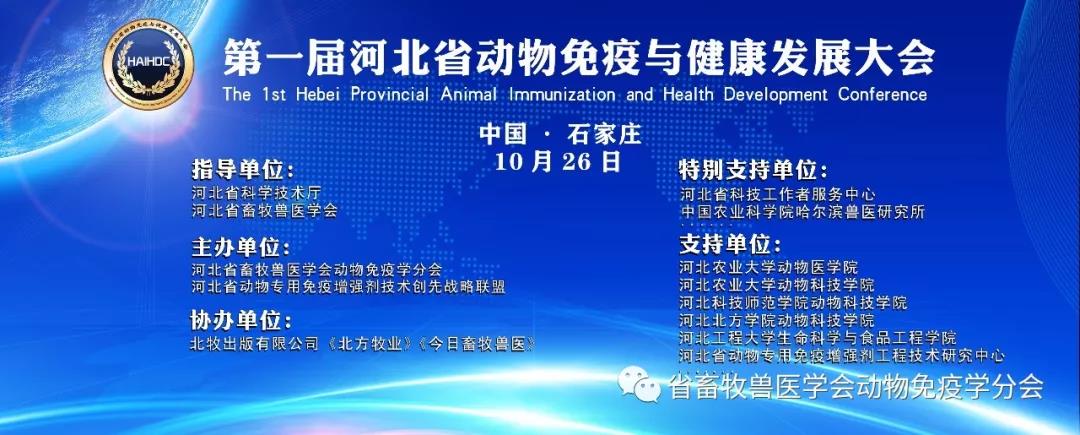 10月25日——26日,由河北省畜牧獸醫(yī)學(xué)會(huì)動(dòng)物免疫學(xué)分會(huì)、河北省動(dòng)物專用免疫增強(qiáng)劑技術(shù)創(chuàng)新戰(zhàn)略聯(lián)盟聯(lián)合主辦,由北方牧業(yè)聯(lián)合承辦的“第一屆河北省動(dòng)物免疫與健康發(fā)展大會(huì)”在石家莊觀和酒店隆重召開!