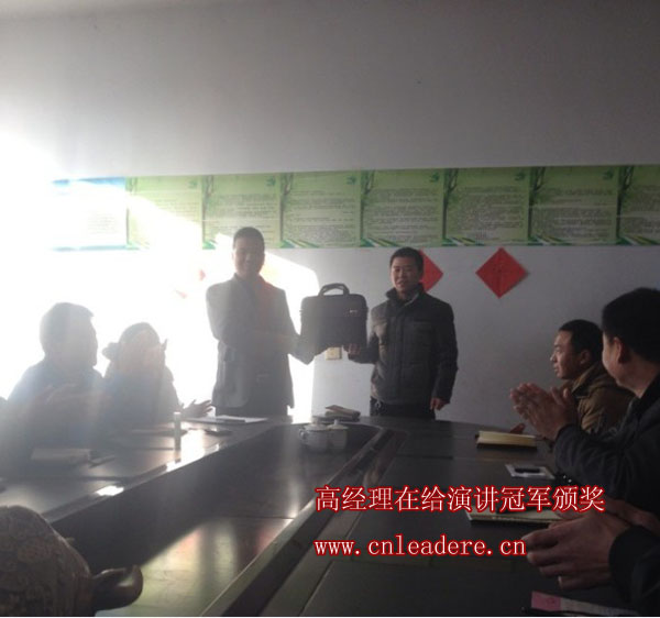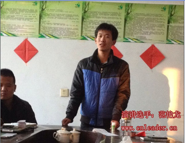 圖為范艷龍講敘了自己來(lái)利德?tīng)柕男〔迩,感謝公司給了自己這個(gè)平臺(tái),及自己在市場(chǎng)上的一些疾病分享。