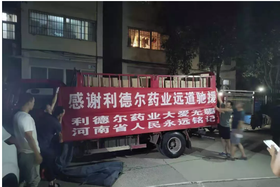 利德爾藥業(yè)董事長王德鴻先生,立即給工廠下達指令,準備84消毒液發(fā)往河南災區(qū)。廠區(qū)后勤人員和工人,接到通知后,加班加點,爭取短時間生產出大量的消毒液,內勤多方聯系發(fā)貨物流,司機一聽是救災物資,毫不猶豫,立即答應,火速將物資送往災區(qū)。